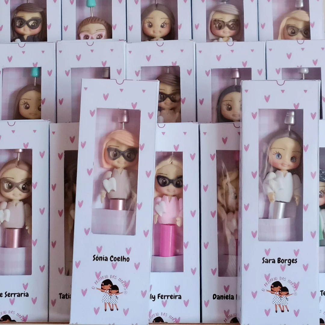 Caneta Dentista/ Assist. Dentária 11,00 € Desconto de %. Partilhar Cor dos olhos Castanhos Verdes Azuis Cor do cabelo Castanho Preto Loiro Vermelho Grisalho Tipo de cabelo Liso Ondulado Caracóis Comprar Contactar ARTIGO PERSONALIZADO ( TEMPO DE PRODUÇÃO 7 A 10 DIAS ÚTEIS). Caneta + Caixa com nome Nas opções deverá escolher as características. Se tiver fotos para personalizar, pode fazer o upload do ficheiro. Identificar o nome (no campo de observações quando estiver a finalizar a encomenda)