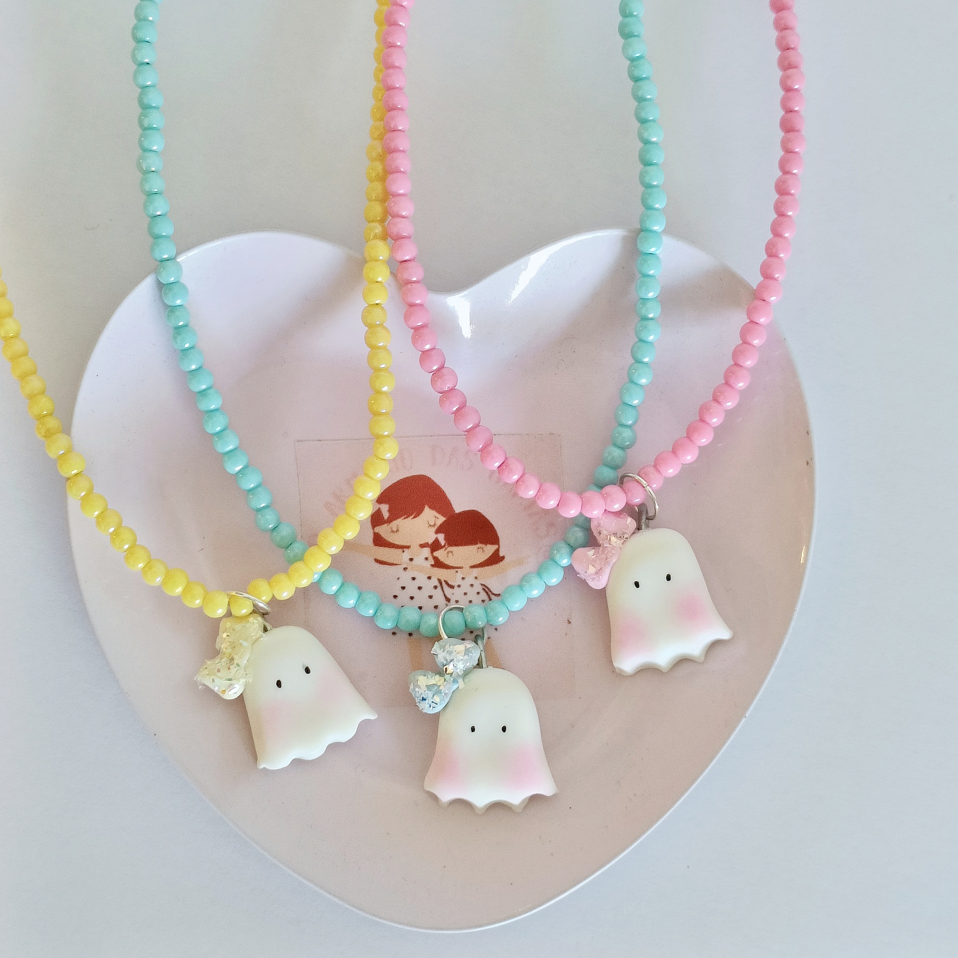 Colar fantasminha 6,00 € Desconto de %. Partilhar Cor Rosa Amarelo Azul claro Comprar Contactar ARTIGO DE ENTREGA IMEDIATA Fio com missangas Pendente 2cm Nas opções deverá escolher a cor (rosa, amarelo ou azul claro)