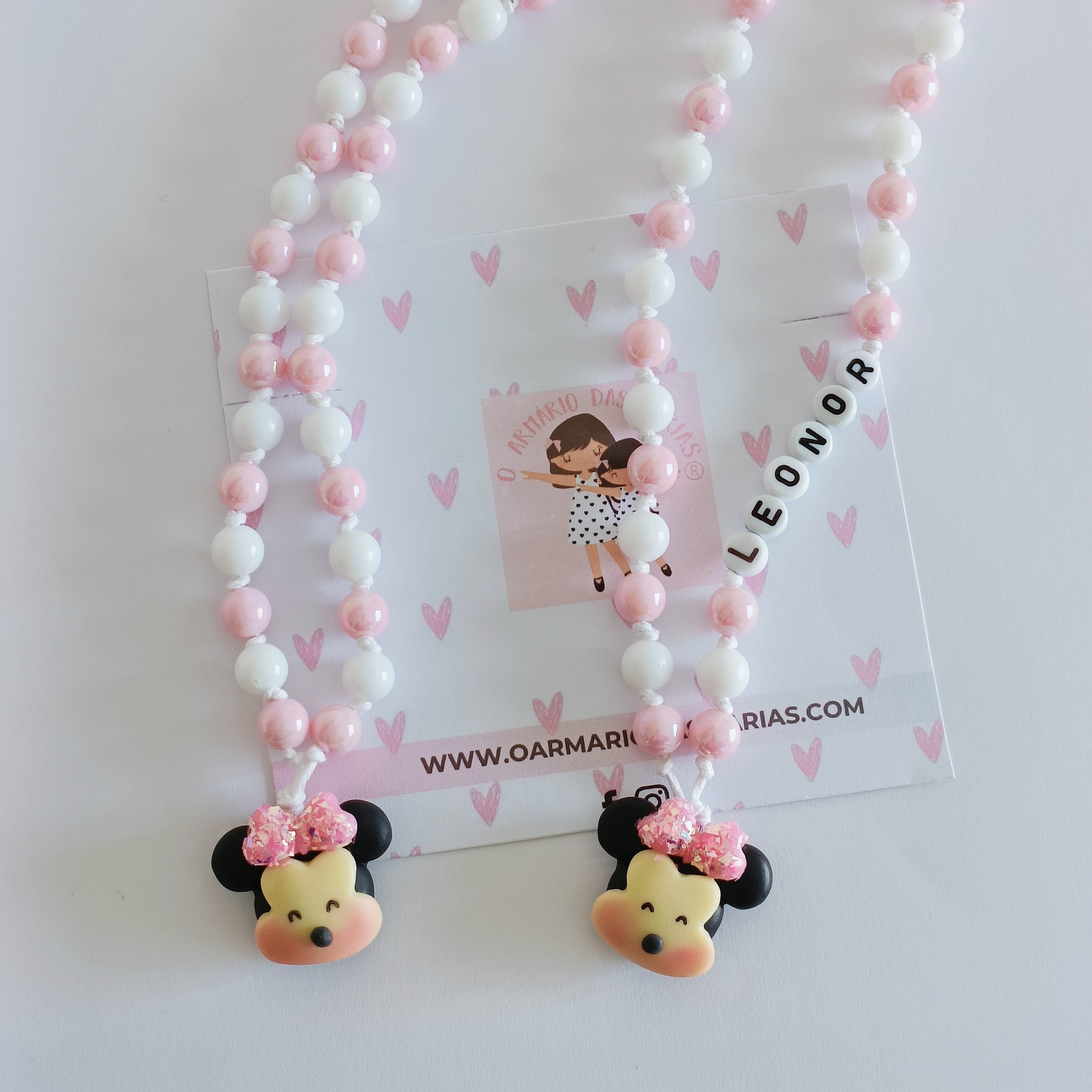 Colar Minnie glitter 9,00 € Desconto de %. Partilhar Nome Sim Não Comprar Contactar Fio de algodão encerado, Contas acrílicas 0.8mm, Pendente em porcelana fria. Nas opções pode escolher se pretende o colar com nome ou personalizado com o nome. Deverá mencionar qual o nome, no campo de observações, quando estiver a finalizar a encomenda.