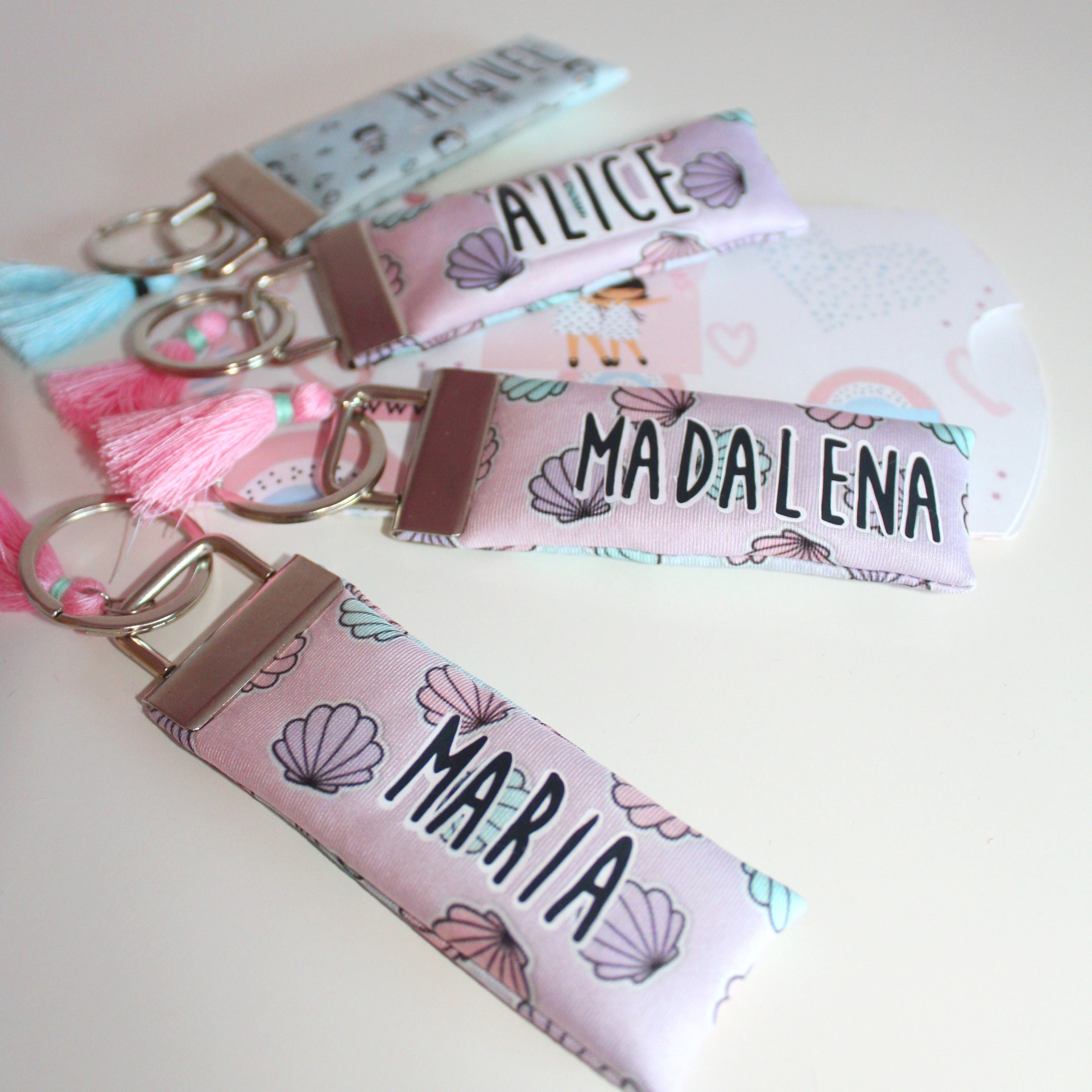 Porta-Chaves / Identificadores para mochilas 4,00 € Desconto de %. Partilhar Nome Alice Madalena Maria Miguel Comprar Contactar Últimas unidades!!! Porta-chaves ou identificadores para mochilas em tecido com gravação do nome. Nomes disponíveis: Alice, Madalena, Maria e Miguel.